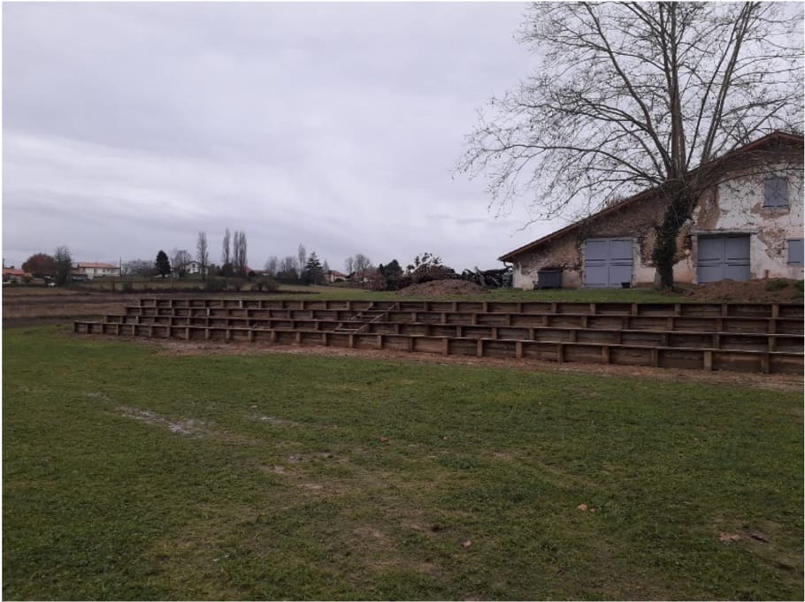 Réalisation d’aménagements autour d’une place et aire de jeux : réalisation de berlinoises et gradins
